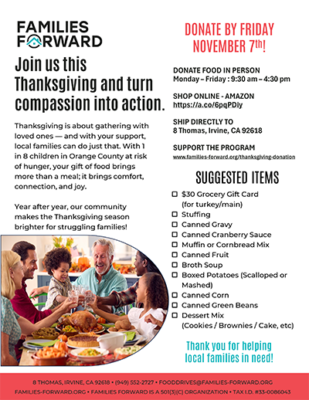 This Thanksgiving, let’s make sure our neighbors can gather around a full table. Right now, nearly 14% of families in Orange County are struggling with food insecurity, and rising grocery costs make it even harder.